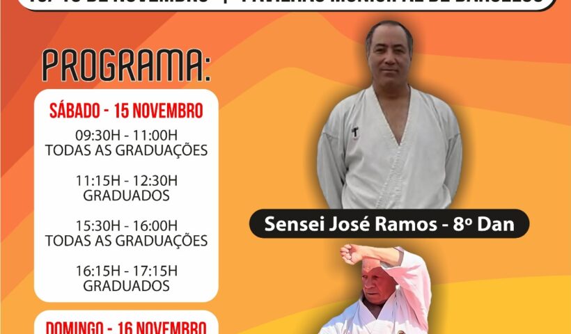 O 9º estágio de Karaté que se realizará nos dias 15 e 16 de novembro irá ser dirigido pelos Sensei José Ramos e Porfírio Isidoro…