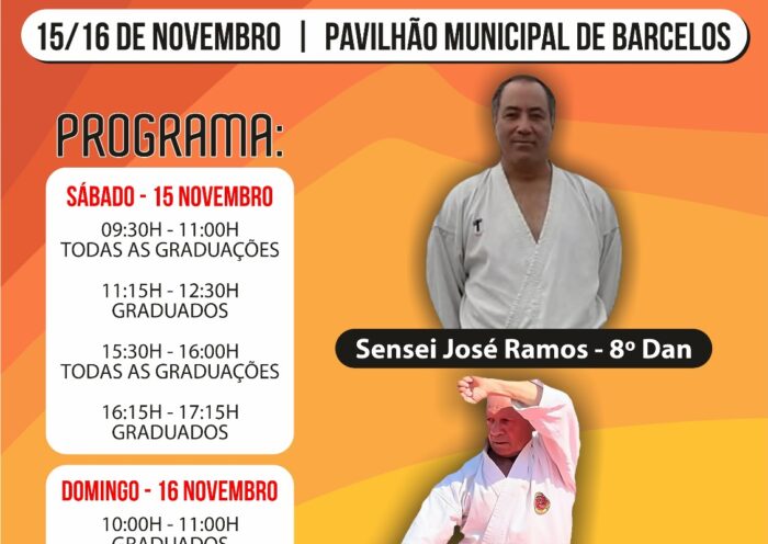 O 9º estágio de Karaté que se realizará nos dias 15 e 16 de novembro irá ser dirigido pelos Sensei José Ramos e Porfírio Isidoro…