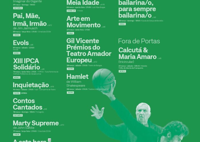 O Theatro Gil Vicente (TGV) apresenta, ao longo do mês de março, uma programação diversificada que integra teatro, dança, música, cinema, stand-up, propostas para bebés…