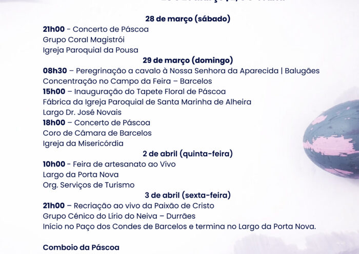 O Município de Barcelos preparou um programa de animação para assinalar a Páscoa, convidando a comunidade e os visitantes a celebrar a data com cultura…