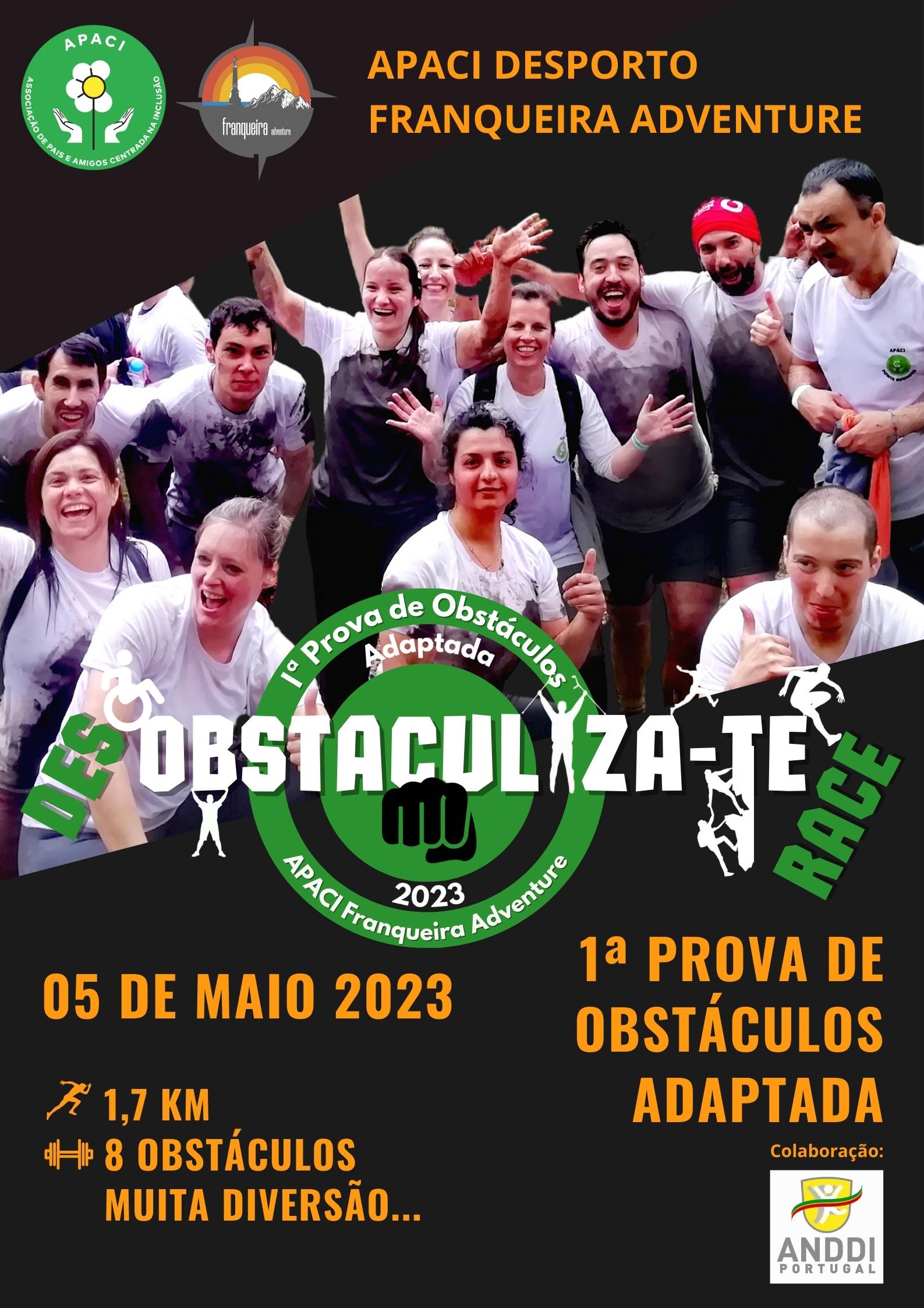 No próximo dia 5 de maio de 2023 (sexta-feira), às 10h00, na Franqueira, realizar-se-á a 1ª Prova de Obstáculos Adaptada sendo a promotora da mesma a APACI, com o apoio da Associação Franqueira Adventure e da ANDDI-PORTUGAL (Associação Nacional de Desporto para a Deficiência Intelectual). Estimamos a participação de 120 atletas, oriundos de diversas associações nacionais que apoiam pessoas com deficiência e/ou incapacidade.
