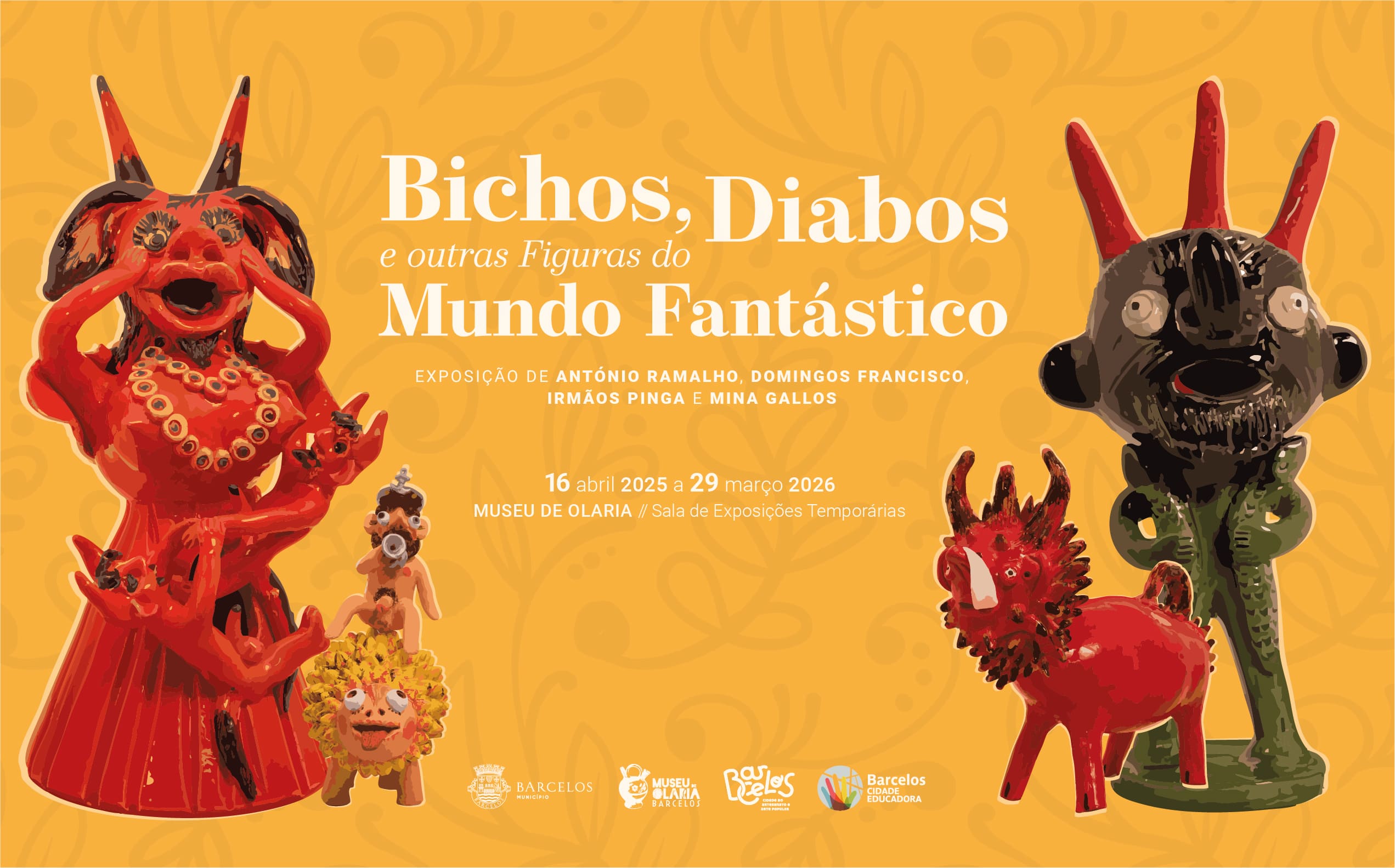 Começando pelo Museu de Olaria, inaugura amanhã, 16 de abril, às 17h30, a exposição temporária "Bichos, Diabos e outras figuras do Mundo Fantástico", uma mostra do trabalho dos artesãos António Ramalho, Domingos Francisco, Irmãos Pinga e Mina Gallos, e que estará patente até 29 de março de 2026.