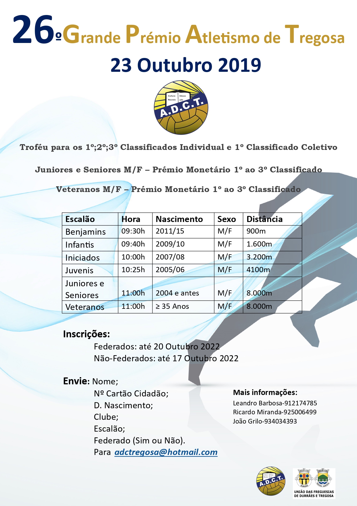 A Associação Desportiva e Cultural de Tregosa, vai organizar o 26 Grande Premio de Atletismo de Tregosa no dia 23 de Outubro de 2022, com início pelas 09H30.