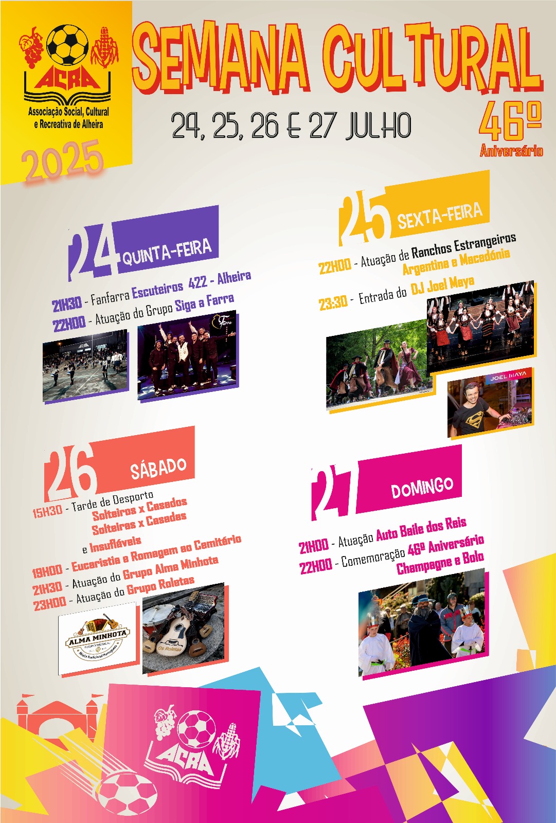 A ACRA - Associação Cultural e Recreativa de Alheira vai comemorar o seu 46º aniversário com Semana Cultural nos dias 24, 25, 26 e 27 de Julho.