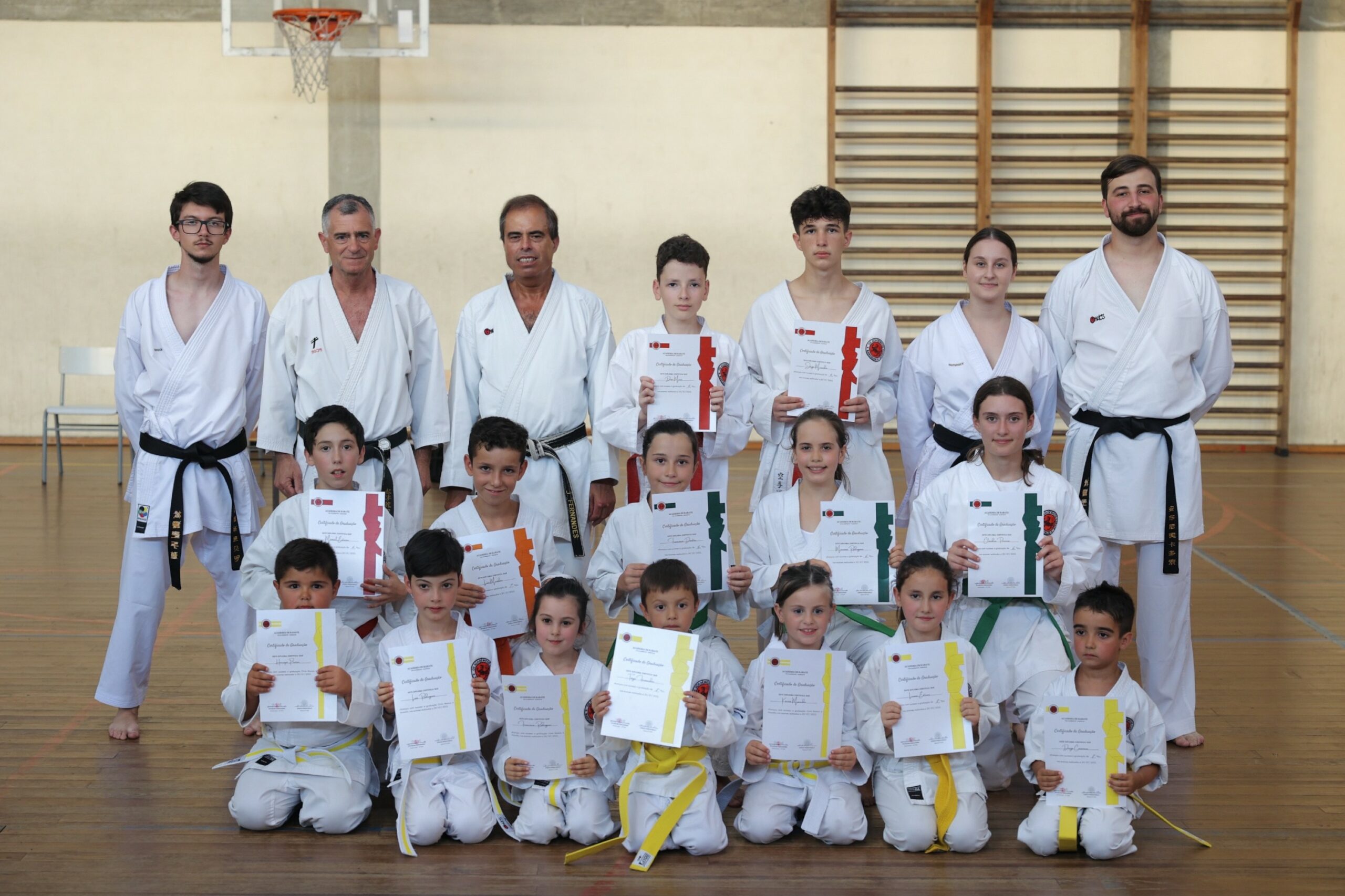 Foram propostos a exame 14 atletas e todos concluíram com sucesso, fruto do trabalho desenvolvido, atingindo a graduação seguinte na sua carreira enquanto atletas de Karate.