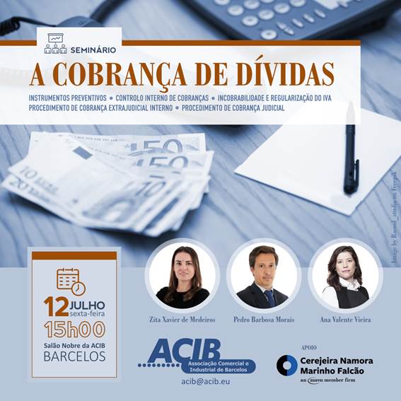 A ACIB – Associação Comercial e Industrial de Barcelos – vai organizar um seminário sobre "Cobrança de Dívidas", no próximo dia 12 de julho, pelas 15h00, no Salão Nobre da Associação.