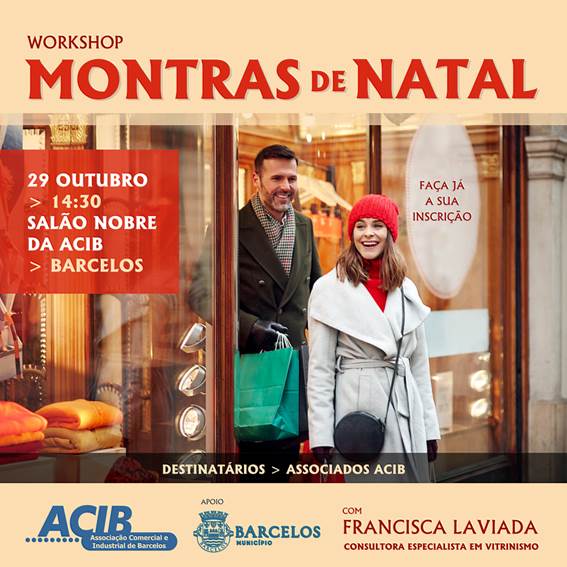 A ACIB, Associação Comercial e Industrial de Barcelos, vai realizar no próximo dia 29 de outubro, pelas 14h30, um workshop subordinado ao tema "Montras de Natal", e que terá lugar no Salão Nobre da Associação, em Barcelos.