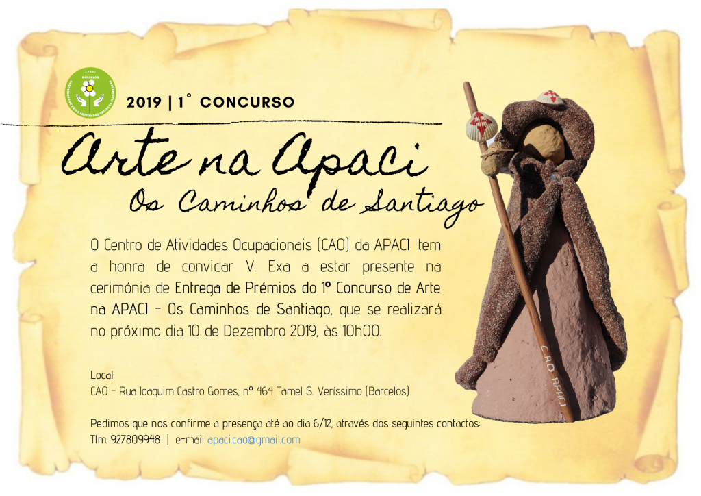 O Centro de Atividades Ocupacionais (CAO) da Associação de Pais e Amigos das Crianças Inadaptadas (APACI) realiza, esta terça-feira, a cerimónia de Entrega de Prémios do 1º Concurso de Arte na APACI – Os Caminhos de Santiago.