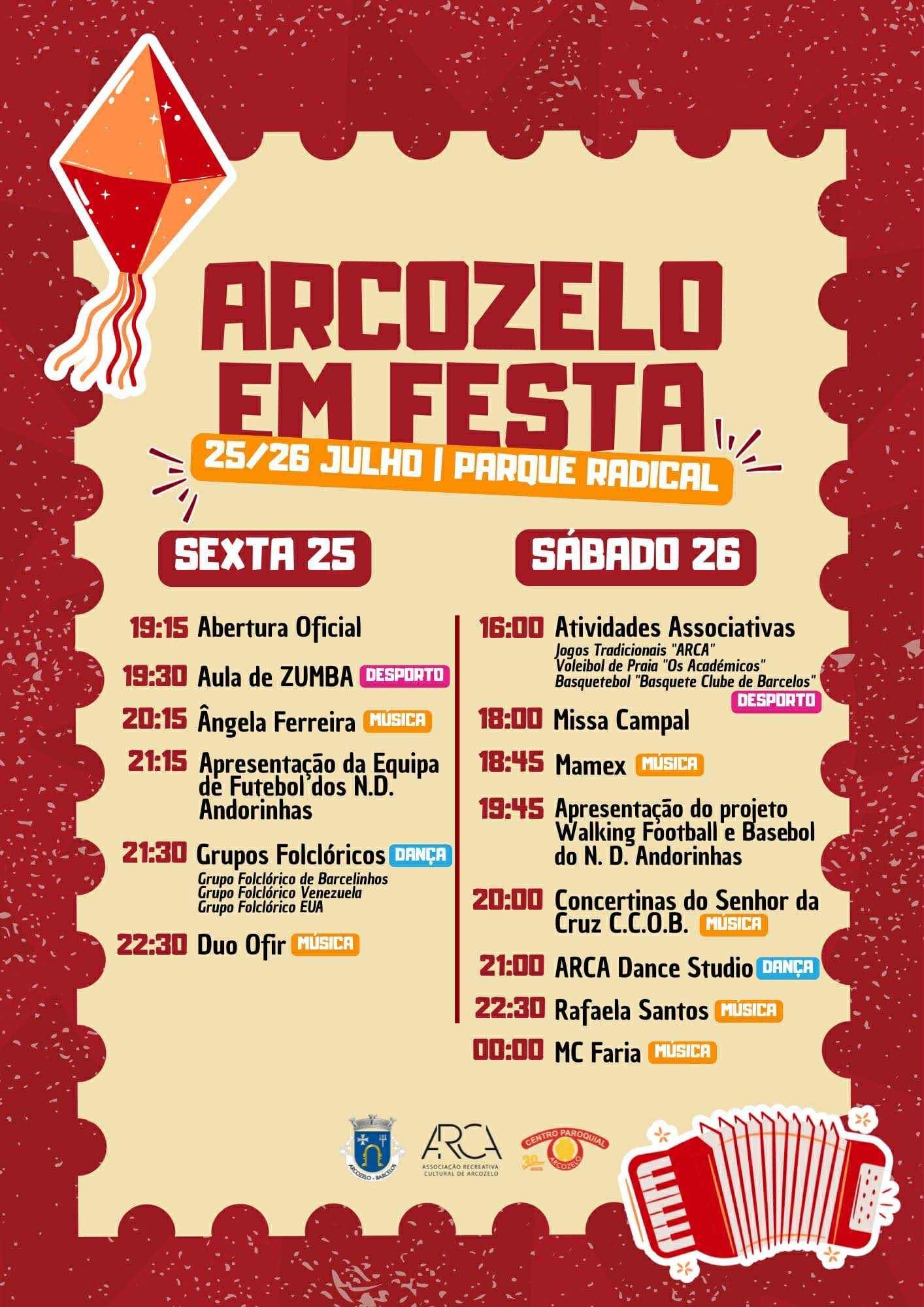 Arcozelo em Festa vai acontecer já este fim de semana, nos dias 25 e 26 de Julho, no parque radical em Arcozelo.