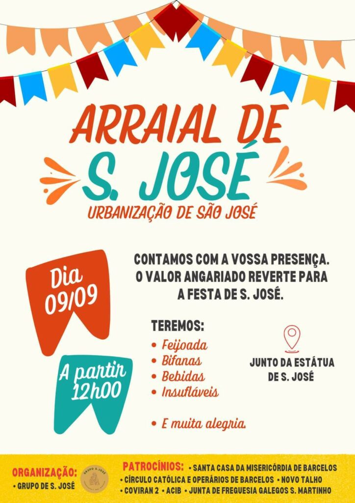 No dia 09 de Setembro, Sábado, o Grupo de S. José irá realizar um Arraial junto da Estátua de S. José.