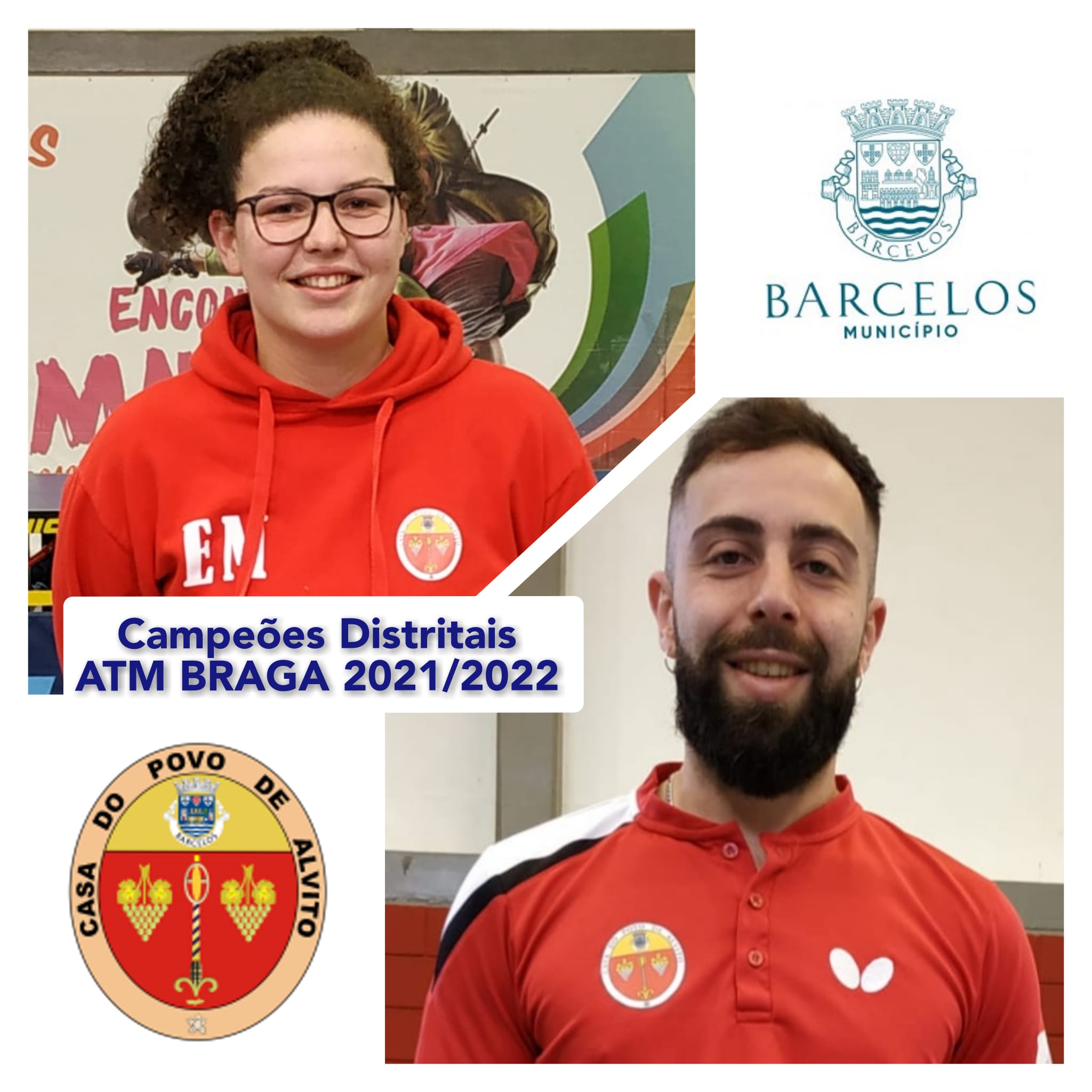 Os atletas de Ténis de Mesa da Casa do Povo de Alvito - Eva Marque e Carlos X. Silva - sagraram-se, no passado fim de semana, Campeões Distritais de Seniores. Os campeonatos organizados pela Associação de Ténis de Mesa de Braga (ATM Braga) decorreram em Vizela, nos dias 26 e 27 de março, tendo a comitiva Barcelense conquistado, mais uma vez, os principais lugares do pódio. A classificação dos atletas da CP Alvito foi a seguinte: