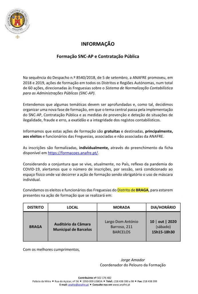 A organização alerta que, considerando a conjuntura em que o país vive, devido à pandemia COVID-19, o número de inscrições por sessão será condicionado ao espaço físico onde vai decorrer a ação de formação, sendo obrigatório o uso de máscara.