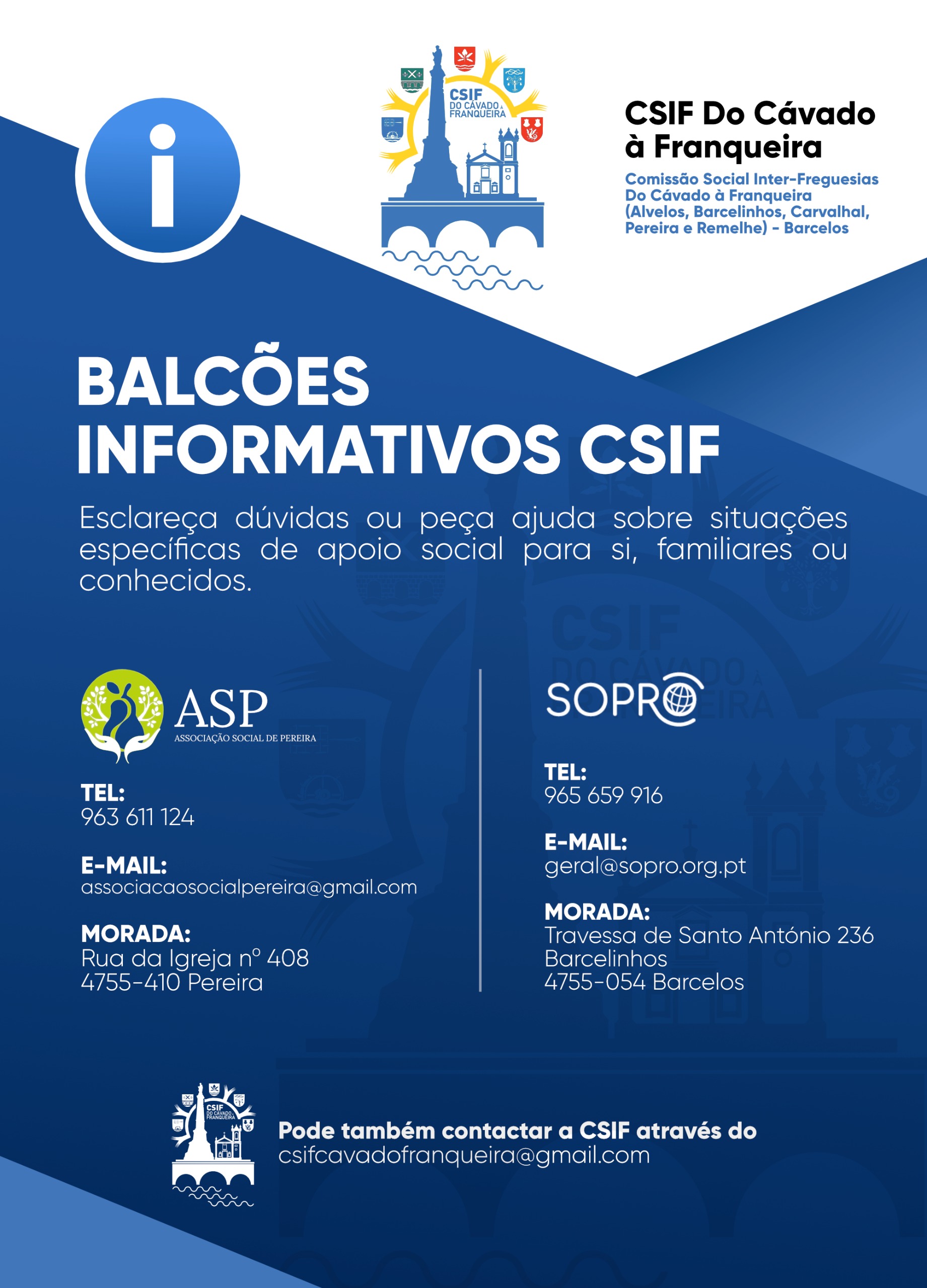 No âmbito da Comissão Social Inter-Freguesias (CSIF) do Cávado à Franqueira, vimos partilhar a nova iniciativa "Balcões Informativos da CSIF", já em curso no nosso território.