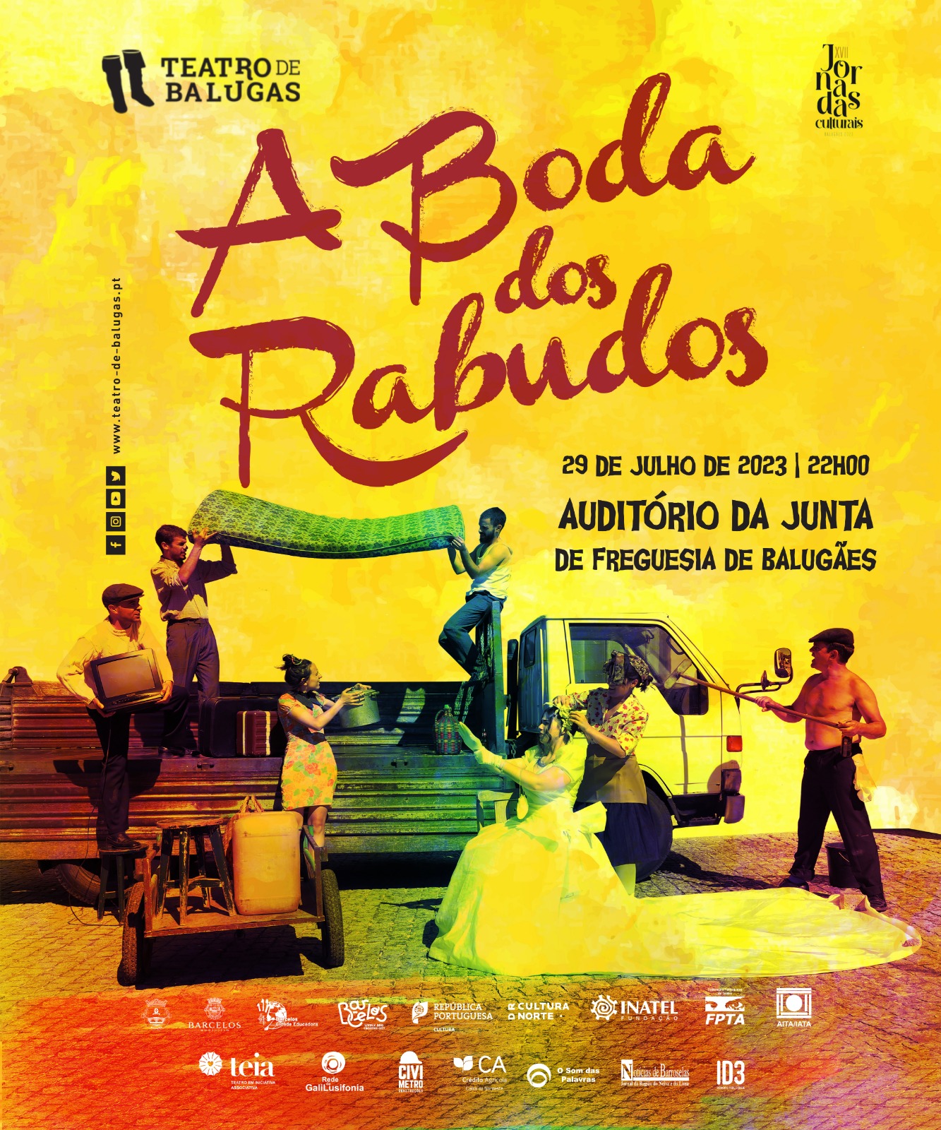 No próximo sábado, dia 29 de julho, pelas 22h00, no auditório da Junta de Freguesia de Balugães, a companhia Teatro de Balugas apresenta a comédia "A Boda dos Rabudos", nas Jornadas Culturais de Balugães que decorrem de 29 a 31 de julho.