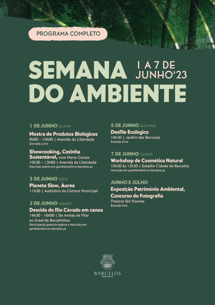 A programação da semana do Ambiente termina no dia 7 de junho com o workshop de "Cosmética Natural", das 10h30 às 12h30, no Estádio Cidade de Barcelos. A atividade carece de inscrição através do e-mail gambiente@cm-barcelos.pt.
