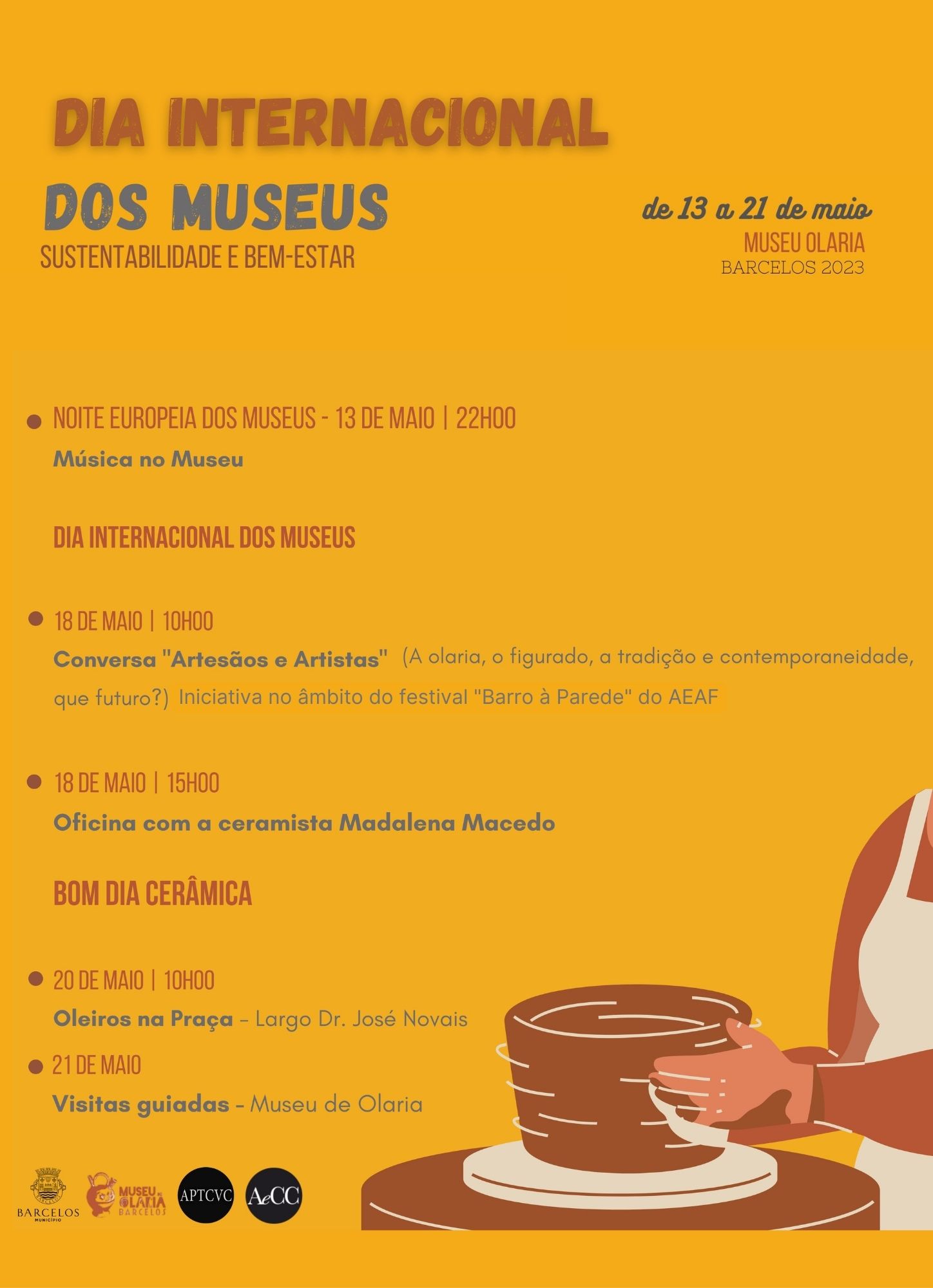 No dia 18 de maio, pelas 10 horas, também no Museu de Olaria, há lugar à conversa "Artesãos e Artistas" (A olaria, o figurado, a tradição e contemporaneidade, que futuro?), uma iniciativa no âmbito do festival "Barro à Parede", do AEAF – Agrupamento de Escolas Alcaides de Faria. Pelas 15 horas, há lugar a uma oficina com a ceramista Madalena Macedo.
