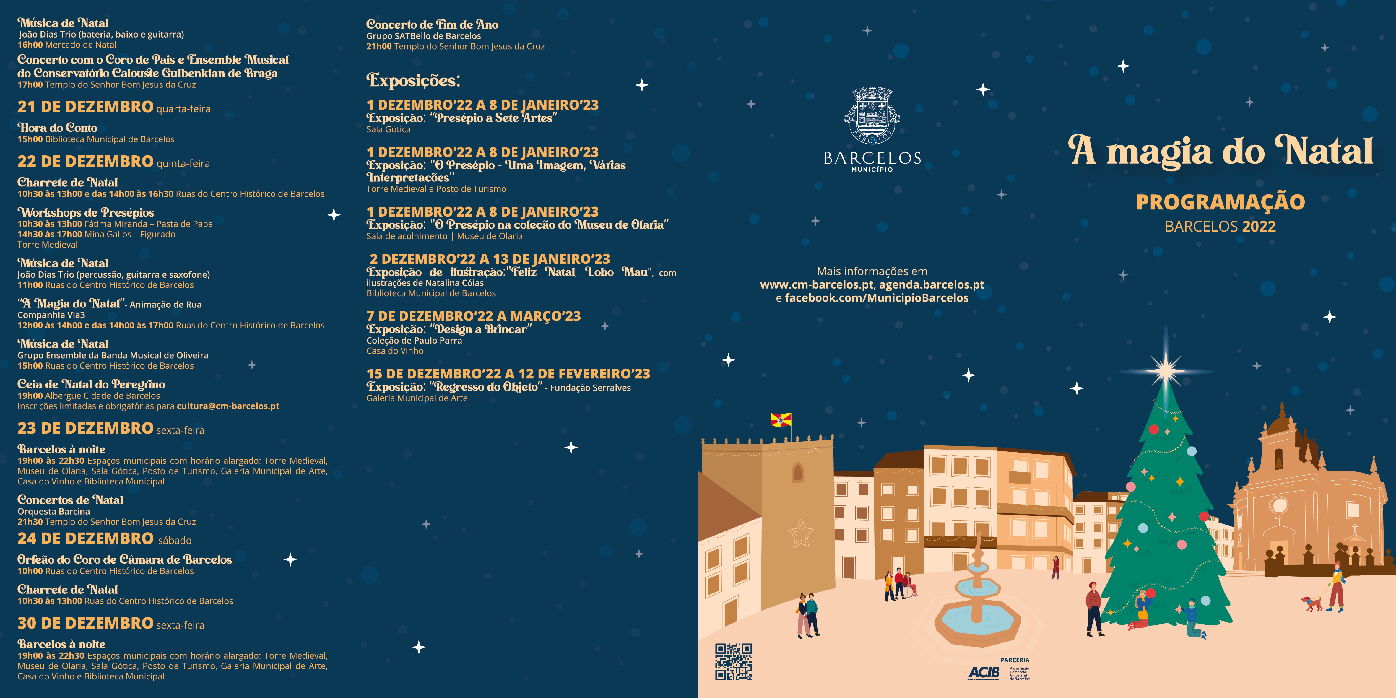 arcelos vai viver a atmosfera da " A Magia de Natal", durante todo o mês de dezembro, através de uma programação vasta e diversificada que o Município de Barcelos preparou para a animação desta época festiva tão querida dos portugueses. As iniciativas de animação, cultura, recreio e lazer, que incluem mais de uma centena eventos, este ano extravasam a zona citadina e alargam-se a diversas freguesias do concelho.