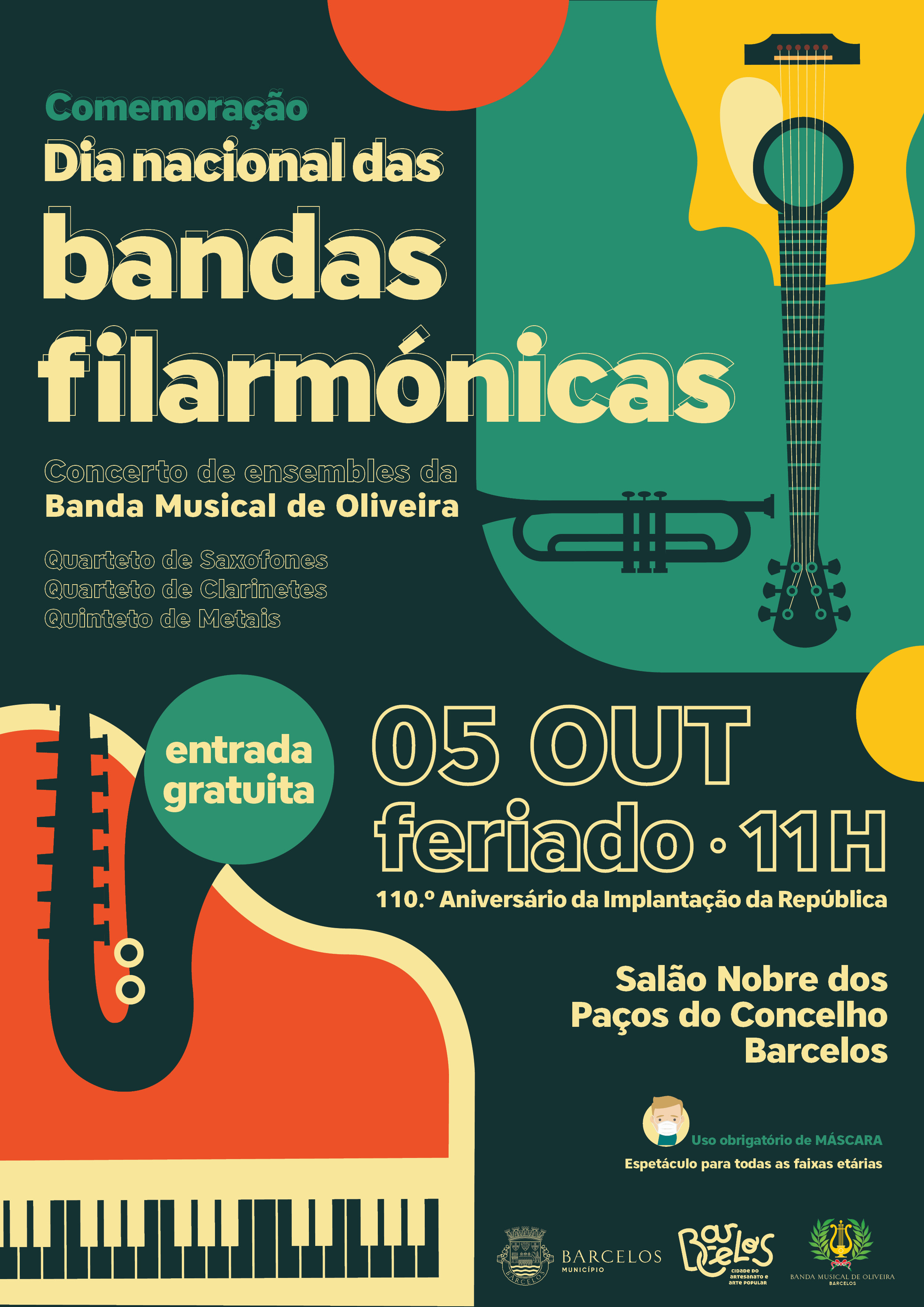 O Município de Barcelos em articulação com a Banda Musical de Oliveira comemora o Dia Nacional das Bandas Filarmónicas, que, este ano, devido à pandemia do Covid-19, se comemora no dia 5 de outubro, dia do 110.º aniversário da implantação da República.