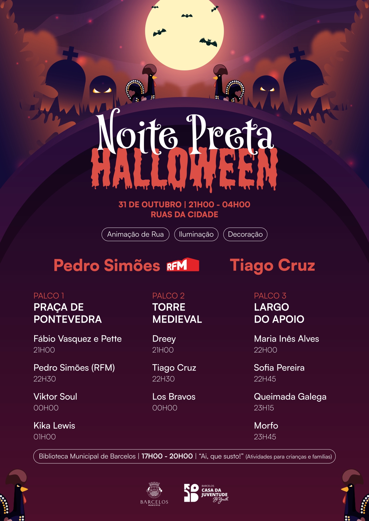 Designada Noite Preta, esta iniciativa vai acontecer a 31 de outubro, com a festa em locais distintos: palco 1 - na Praça Pontevedra; palco 2 - na Torre Medieval e palco 3 - no Largo do Apoio. Com muita animação de rua, iluminação e decoração, a festa estende-se às ruas da cidade, onde a colaboração com negócios locais, como cafés e bares com venda ao postigo é um dos pilares da iniciativa, que vai decorrer entre as 21h00 e as 04h00 da manhã, sendo que às 23h15 vai realizar-se uma Queimada Galega.