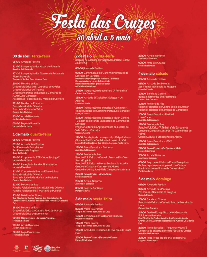 A CP – Comboios de Portugal também se associa à Festa das Cruzes e, no feriado do dia 1 de maio, vai alargar a oferta de lugares disponíveis no serviço Inter-regional 853, 830, 831 e 856. No dia 03 de maio, dia de feriado municipal, também haverá oferta alargada de lugares disponíveis no serviço Inter-regional 853 e 830. Além da maior oferta de lugares, a CP informa que, nesses feriados de 1 e 3 de maio, o comboio celta 420 e 423 terá paragem na estação de Barcelos.