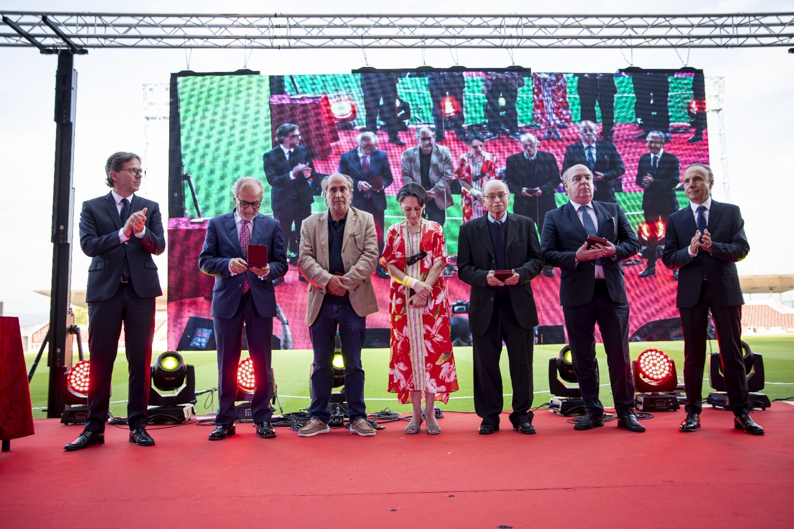 Seiscentos e doze membros da Assembleia Municipal, quatrocentos e catorze Presidentes de Junta, setenta e oito Vereadores, oito Presidentes de Assembleia Municipal e seis Presidentes de Câmara foram ontem homenageados no decorrer da cerimónia de celebração dos 96 anos de Elevação de Barcelos à categoria de Cidade. Na iniciativa, que decorreu no Estádio Cidade de Barcelos e que contou com a presença da maioria dos homenageados e seus familiares, o Município barcelense agraciou todos aqueles autarcas com uma Medalha Comemorativa dos 50 anos da Revolução do 25 de Abril, como forma de reconhecimento pelo trabalho efetuado em prole da causa pública. "A Câmara Municipal, o nosso concelho, o nosso Município, todos juntos prestamos homenagem às personalidades barcelenses que, ao longo deste percurso de meio século, corporizaram um dos maiores pilares da democracia portuguesa – o Poder Local", sublinhou o Presidente Mário Constantino Lopes, no seu discurso do Dia da Cidade. "Saúdo de uma forma muito fraterna e calorosa, todos os nossos autarcas - Presidentes de Junta, membros da Assembleia Municipal, Vereadores, Presidentes da Assembleia Municipal e Presidentes de Câmara - individualidades que estamos a homenagear pela dedicação e trabalho em benefício do desenvolvimento do nosso concelho", vincou o edil barcelense.