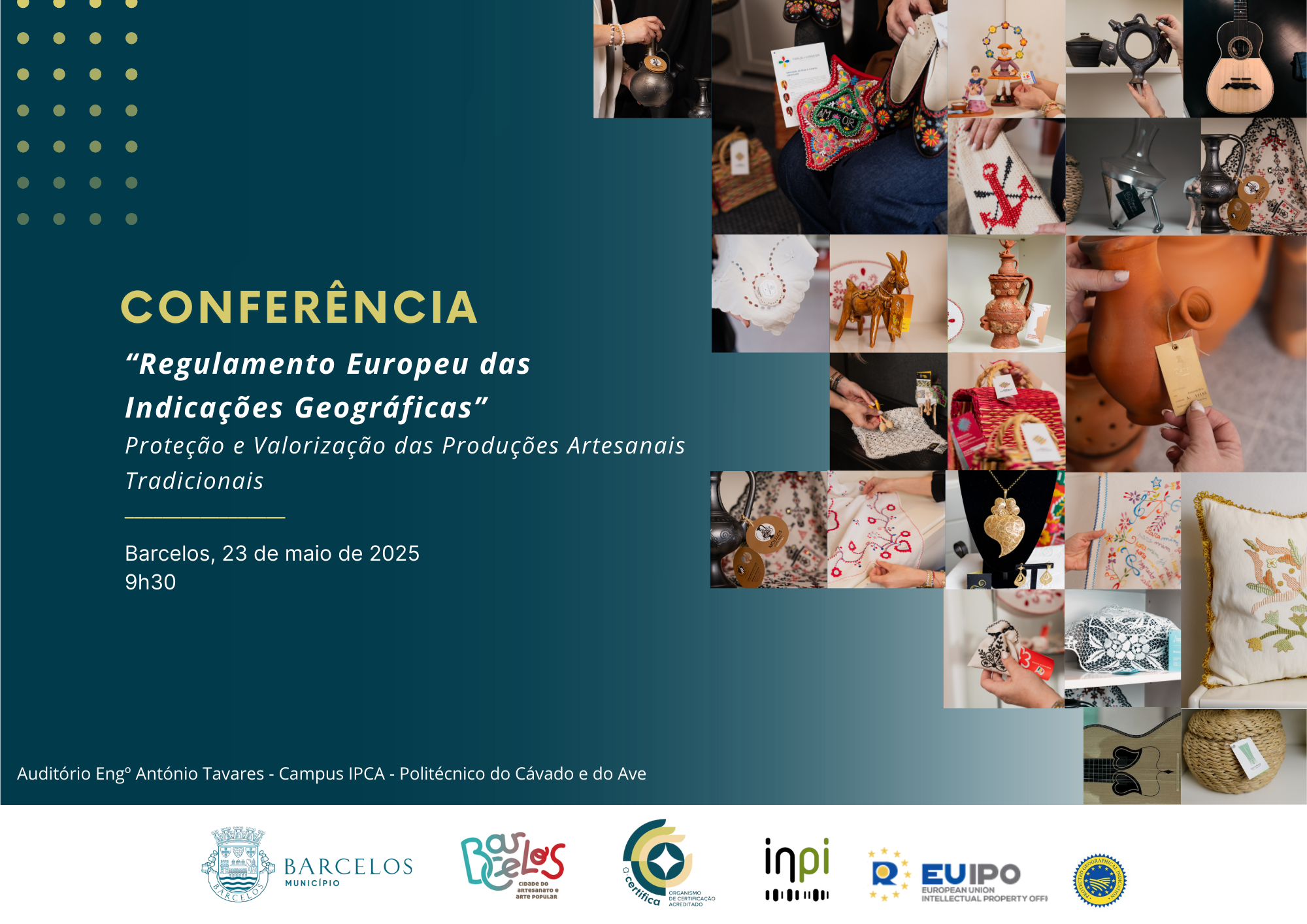 O Município de Barcelos, em parceria com a ACERTIFICA – Organismo de Certificação, promove no próximo dia 23 de maio, no Auditório Eng.º António Tavares (IPCA), a conferência "Regulamento Europeu das Indicações Geográficas – Proteção e Valorização das Produções Artesanais Tradicionais". A iniciativa, que decorre entre as 9h00 e as 13h00, pretende esclarecer o novo quadro legal europeu que entrará em vigor em dezembro e que reforça a proteção das Indicações Geográficas (IG) para produtos artesanais e industriais, à semelhança do que já sucede no setor agrícola e alimentar.