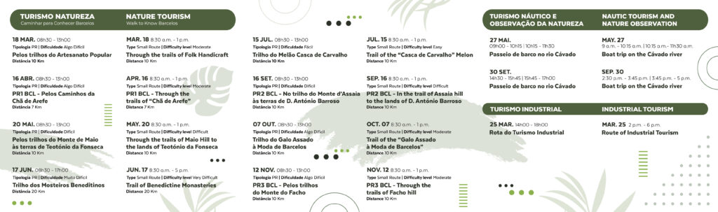 Turismo de natureza - Caminhar para Conhecer Barcelos – (8 rotas) sendo uma durante todo o dia.