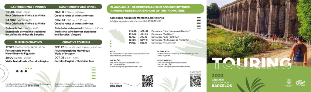 O Programa Touring 2023, promovido pelo Município de Barcelos, está de regresso e este ano conta com 16 iniciativas, a realizar entre os meses de março e novembro. A iniciativa visa promover e potenciar o património e a identidade natural e cultural do concelho, muitas vezes situado fora das rotas turísticas habituais. Ao mesmo tempo, constitui-se como fator complementar à oferta para quem escolhe Barcelos para passar férias ou simplesmente um fim de semana, numa das muitas unidades de alojamento espalhadas pelo território.