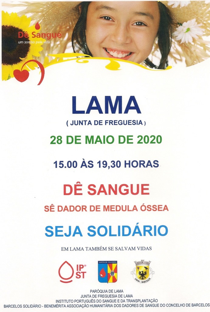 Esta recolha terá lugar na Junta de Freguesia de Lama e conta com o apoio da referida Junta de Freguesia, da paróquia de Lama e do Instituto do Sangue e da Transplantação.