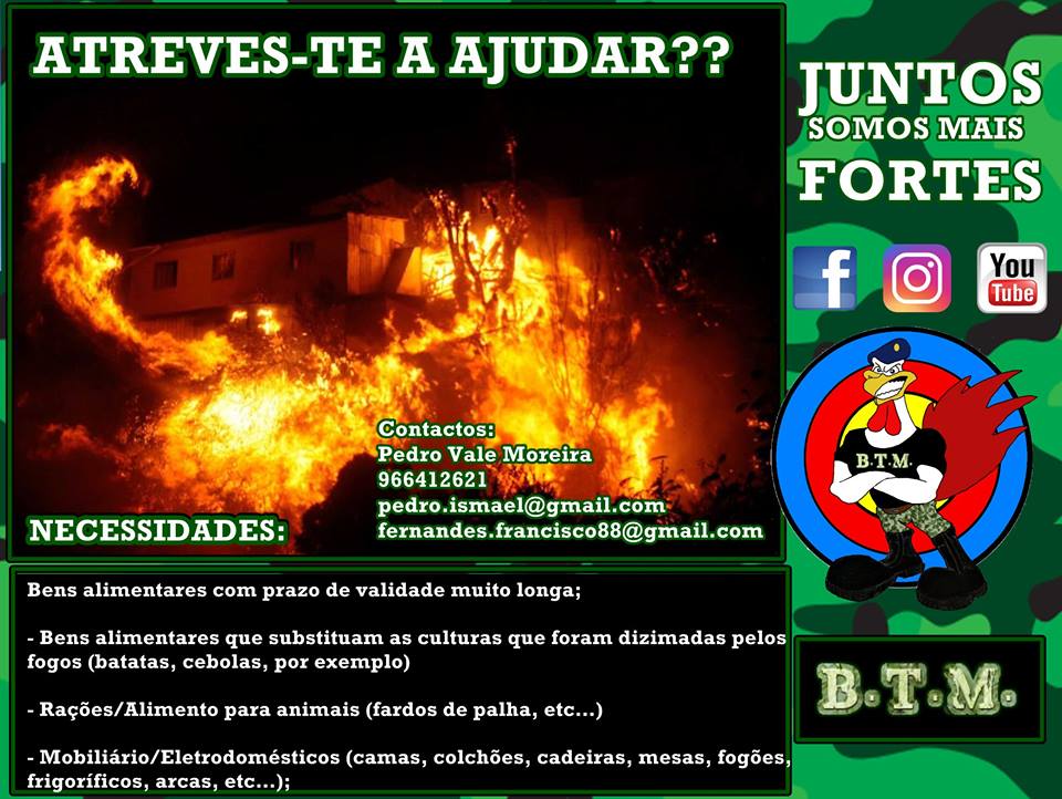 A equipa Barcelos Treino Militar está a desenvolver uma campanha de solidariedade para ajudar as populações afetadas pela tragédia dos incêndios de 15 de Outubro. O grupo de trail está a anagariar diversos bens: alimentos com prazo de validade muito longa, ração para animais, mobiliário e eletrodomésticos entre outros. A Barcelos Treino Militar está em contacto com pessoas ligadas aos Bombeiros de Vouzela e à Câmara de Viseu para perceber as reais necessidades das populações, como explica à Rádio Cávado Pedro Moreira: "Fizemos algo que achamos importante que foi, primeiro, entrar em contacto com as pessoas que andam no terreno a trabalhar, porque têm clara noção do que há falta. Transmitiram-nos, de imediato, que há bens que não interessa estar a enviar, como roupa, porque já têm em excesso. Mas há outros bens, que são precisos agora e que farão falta depois". Para já, a melhor forma de fazer chegar os bens à Barcelos Treino Militar é através do contacto 966412621 para combinar a entrega, mas em breve o grupo irá divulgar pontos de recolha no concelho. Além da angariação de bens, os atletas da Barcelos Treino Militar irão, em breve, a locais afetados pela tragédia para ajudar diretamente as populações.