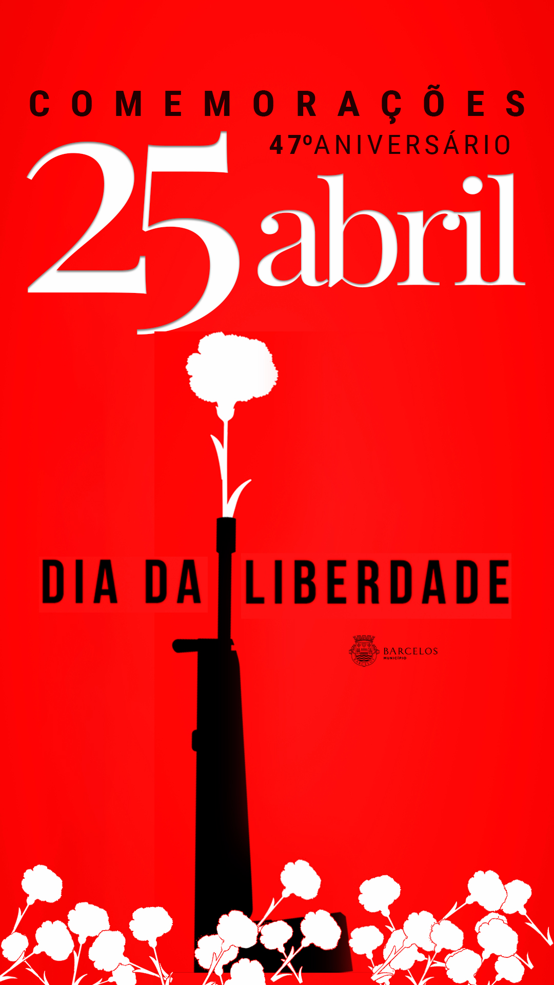 O Município de Barcelos comemora o 47.º aniversário do 25 de Abril com uma cerimónia limitada a um número reduzido de presenças, devido à pandemia, sendo transmitida em streaming, através das plataformas digitais do Município.