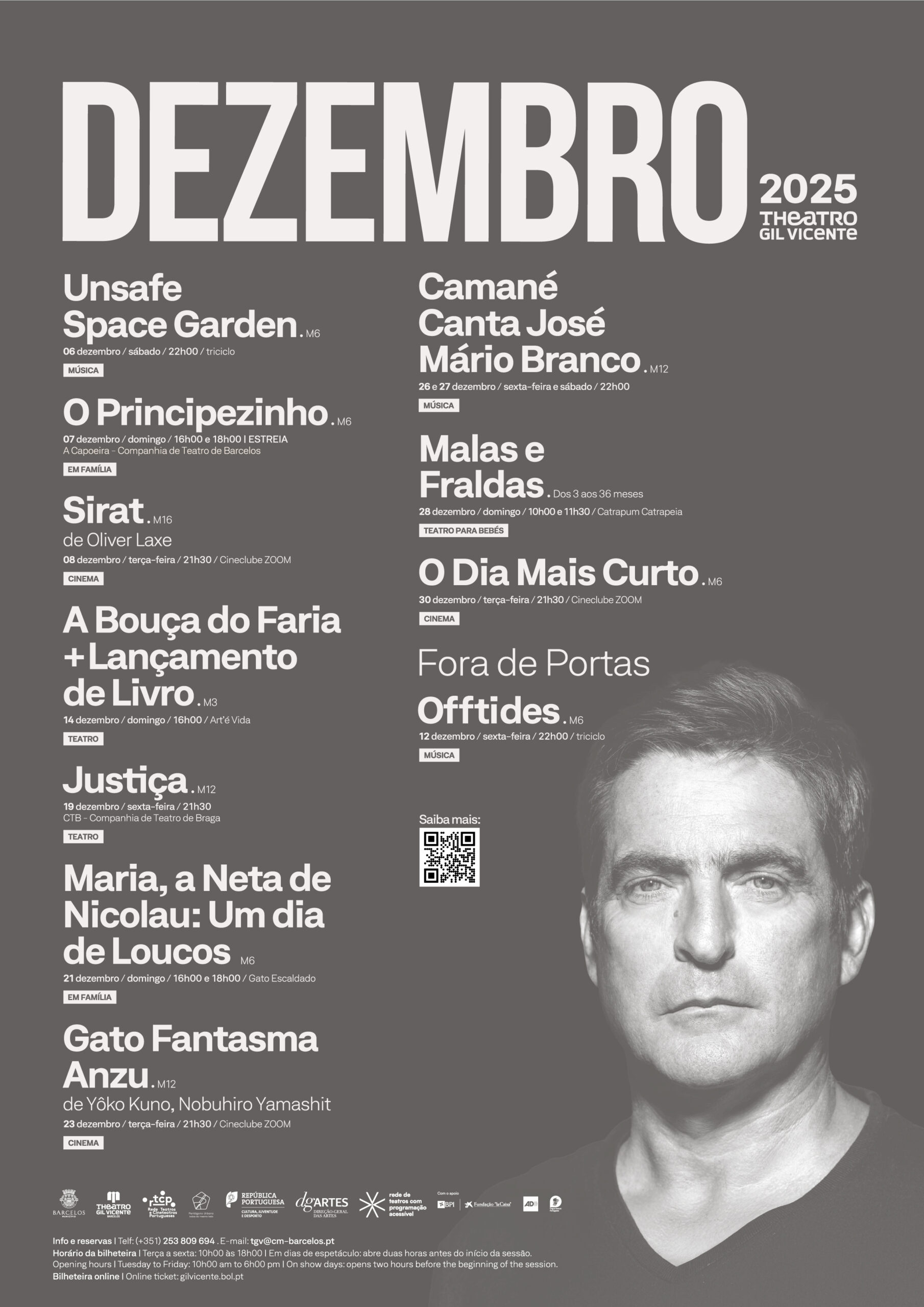 Em dezembro, o destaque vai para Camané, que apresenta "Camané canta José Mário Branco" - um trabalho de 2024 que homenageia o compositor e leva o Fado a novas profundezas poéticas e emocionais (26 e 27 de dezembro, 22h00).