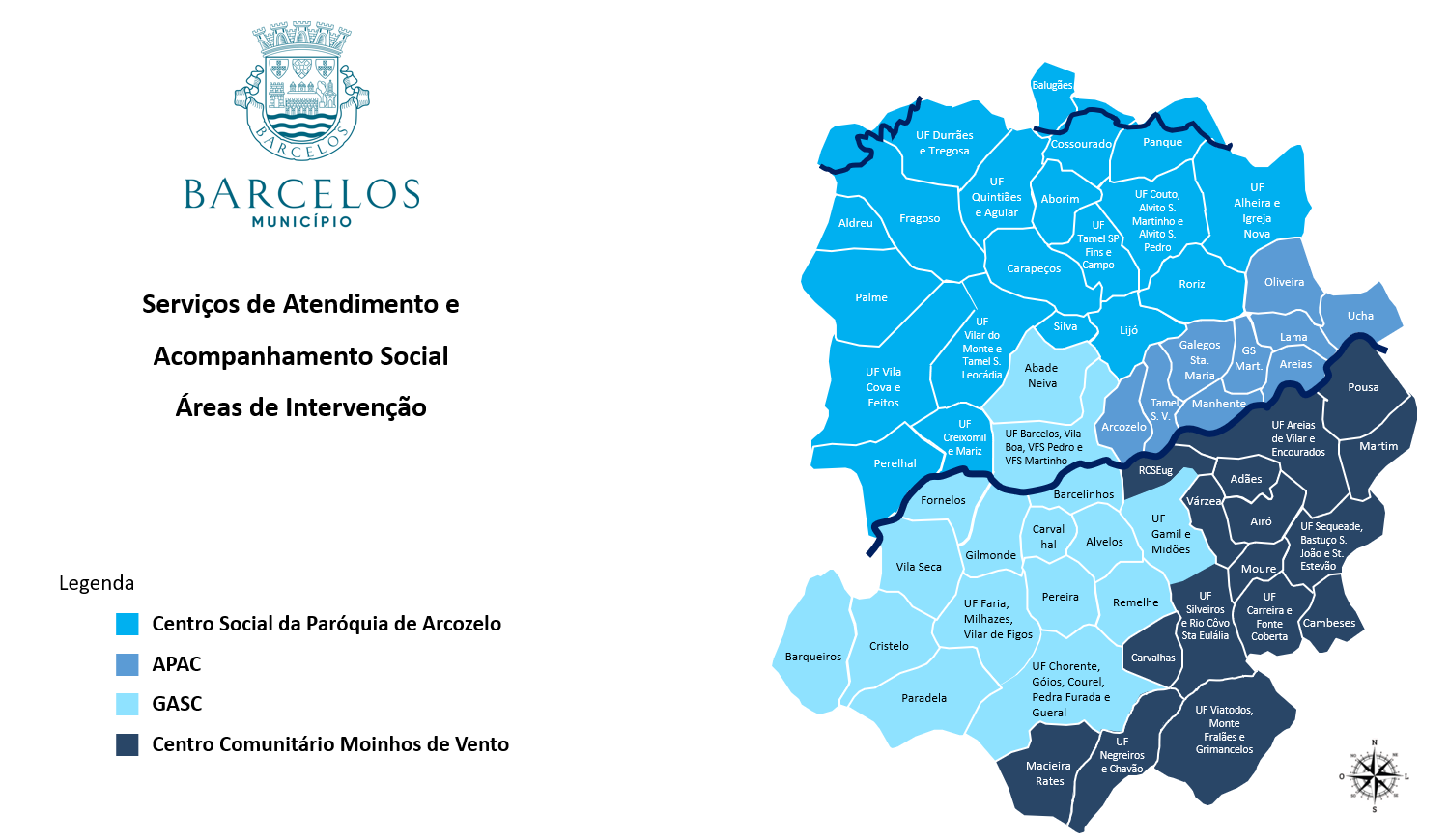 Ao abrigo da descentralização de competências do Governo para as autarquias no domínio da Ação Social, o Município de Barcelos passou a assumir, a partir de 3 de abril de 2023, a coordenação do Serviço de Atendimento e Acompanhamento Social, até aqui assegurado pela Segurança Social. A Câmara Municipal de Barcelos passa, assim, a assegurar a coordenação do SAAS - Serviço de Atendimento e Acompanhamento Social de pessoas e famílias em situação de vulnerabilidade e exclusão social, incluindo os beneficiários do Rendimento Social de Inserção. Entretanto, para o bom funcionamento deste serviço, o Município de Barcelos assinou hoje, ao final da tarde, protocolos de cooperação com o Grupo de Ação Social Cristã (GASC), Associação de Pais e Amigos de Crianças (APAC), Centro Social da Paróquia de Arcozelo e Centro Comunitário Moinhos de Vento, mantendo assim a intervenção já existente ao nível técnico. Segundo o presidente, Mário Constantino, com estes acordos o Município "aproveita as sinergias das equipas que já estão no terreno e que fazem um excelente trabalho". O presidente acrescentou que este ano o Município já reforçou os apoios concedidos às instituições sociais. Por seu lado, o vereador da Ação Social, António Ribeiro, agradeceu às instituições e sublinhou que "Barcelos é tido como um bom exemplo no que respeita à colaboração entre o movimento associativo e o Município". Sublinhe-se que o Serviço de Atendimento e Acompanhamento Social é um serviço de ação social de proximidade à população cujos objetivos são informar, aconselhar, orientar e encaminhar as famílias ou pessoas individuais, tendo em conta os seus direitos, deveres e responsabilidades. Assim, a distribuição do território organiza-se da seguinte forma: