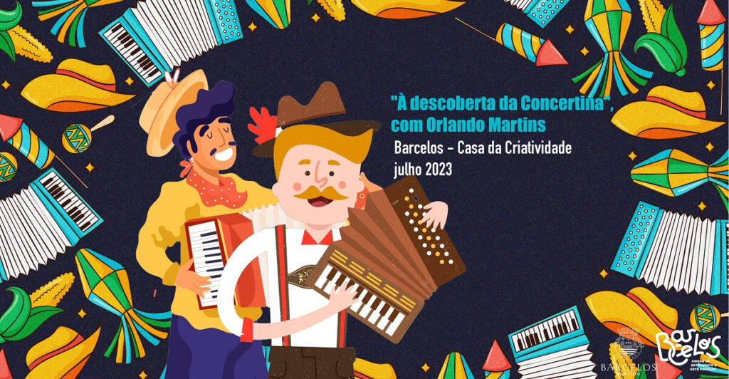 A oficina criativa "À Descoberta da Concertina" vai ser dinamizada pelo prof. Orlando Martins. Trata-se de uma proposta de uma breve viagem pela história da concertina, de como este instrumento musical chega a Portugal e a sua integração na música tradicional portuguesa, principalmente no norte do país. Dos conteúdos desta ação, fazem ainda parte uma abordagem acústica e musical sobre como funciona a concertina e as suas possibilidades musicais, tentando proporcionar aos participantes uma experiência prática de introdução ao toque da concertina.