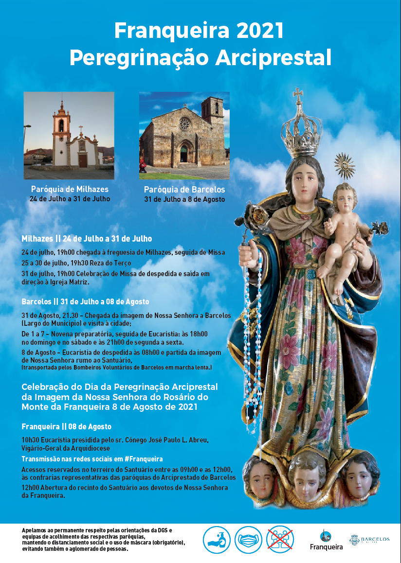 No próximo dia 08 de agosto de 2021, a Confraria da Nossa Senhora do Rosário do Monte da Franqueira, vai realizar o dia Dia da Peregrinação Arciprestal da Imagem da Nossa Senhora do Rosário do Monte da Franqueira, em substituição da histórica Peregrinação que todos os anos leva milhares de fiéis ao alto do monte onde se encontra a padroeira dos Barcelenses.