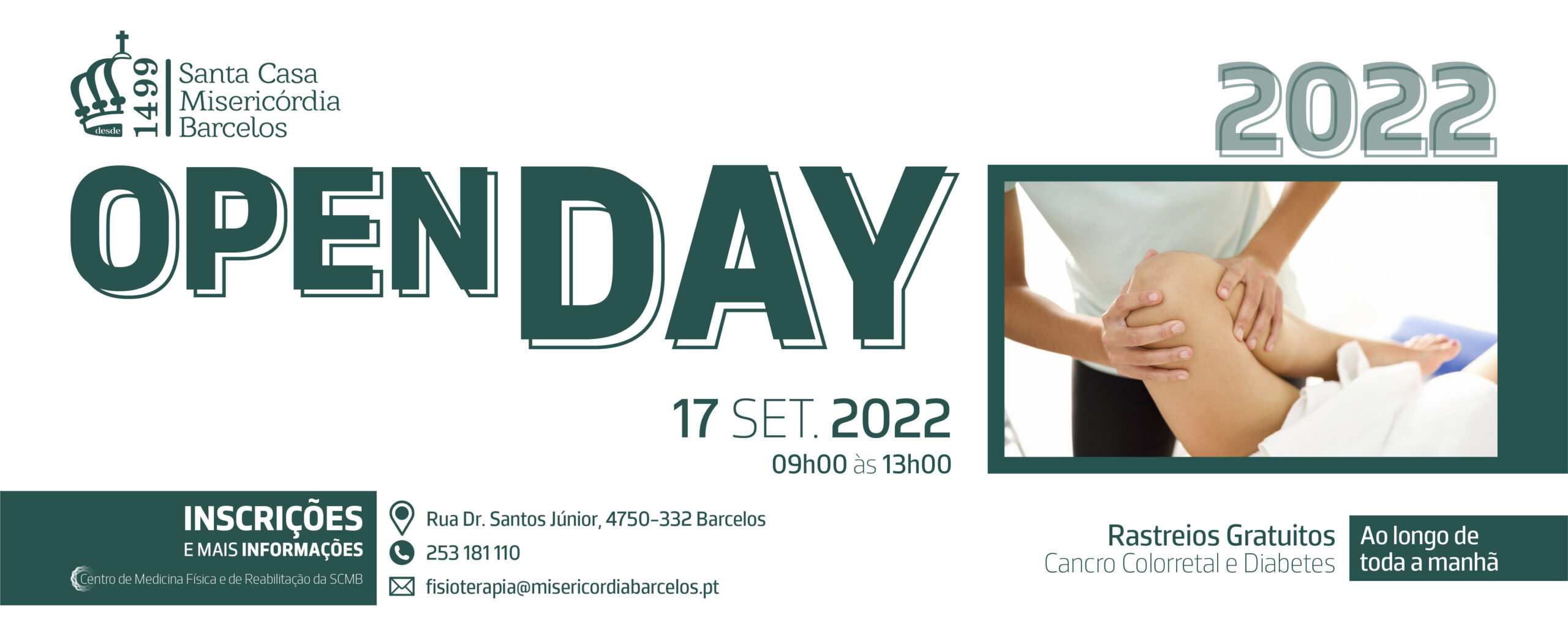 Na manhã deste sábado 17 de setembro, realizar-se-á o Open Day 2022, promovido pelo Centro de Medicina Física e de Reabilitação (CMFR) da Misericórdia de Barcelos.