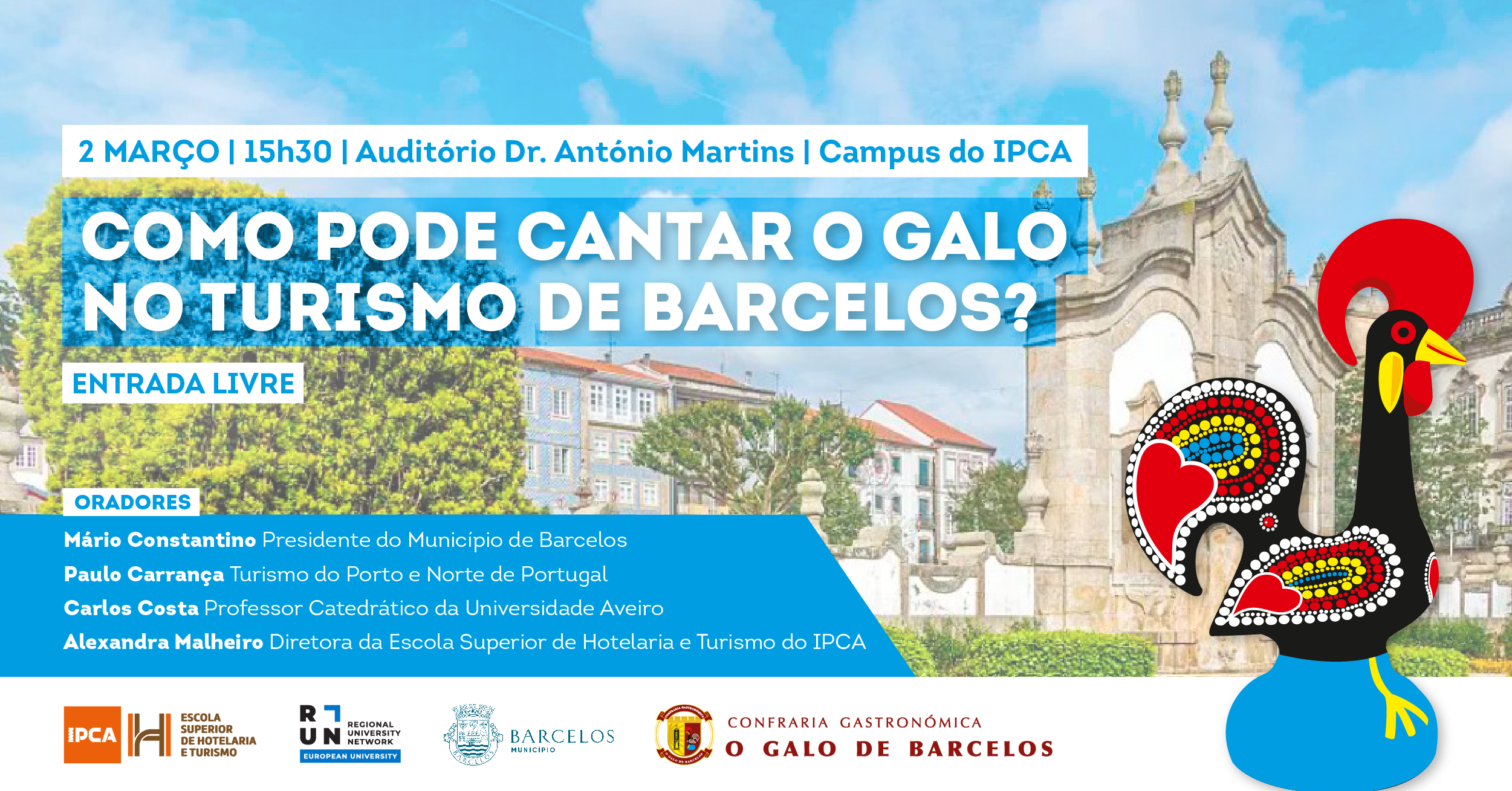 A iniciativa, agendada para as 15h30, no auditório Dr. António Martins (Escola Superior de Gestão do IPCA), é promovida pela Confraria Gastronómica do Galo de Barcelos, em colaboração com a Escola Superior de Hotelaria e Turismo do IPCA e a Câmara Municipal de Barcelos.