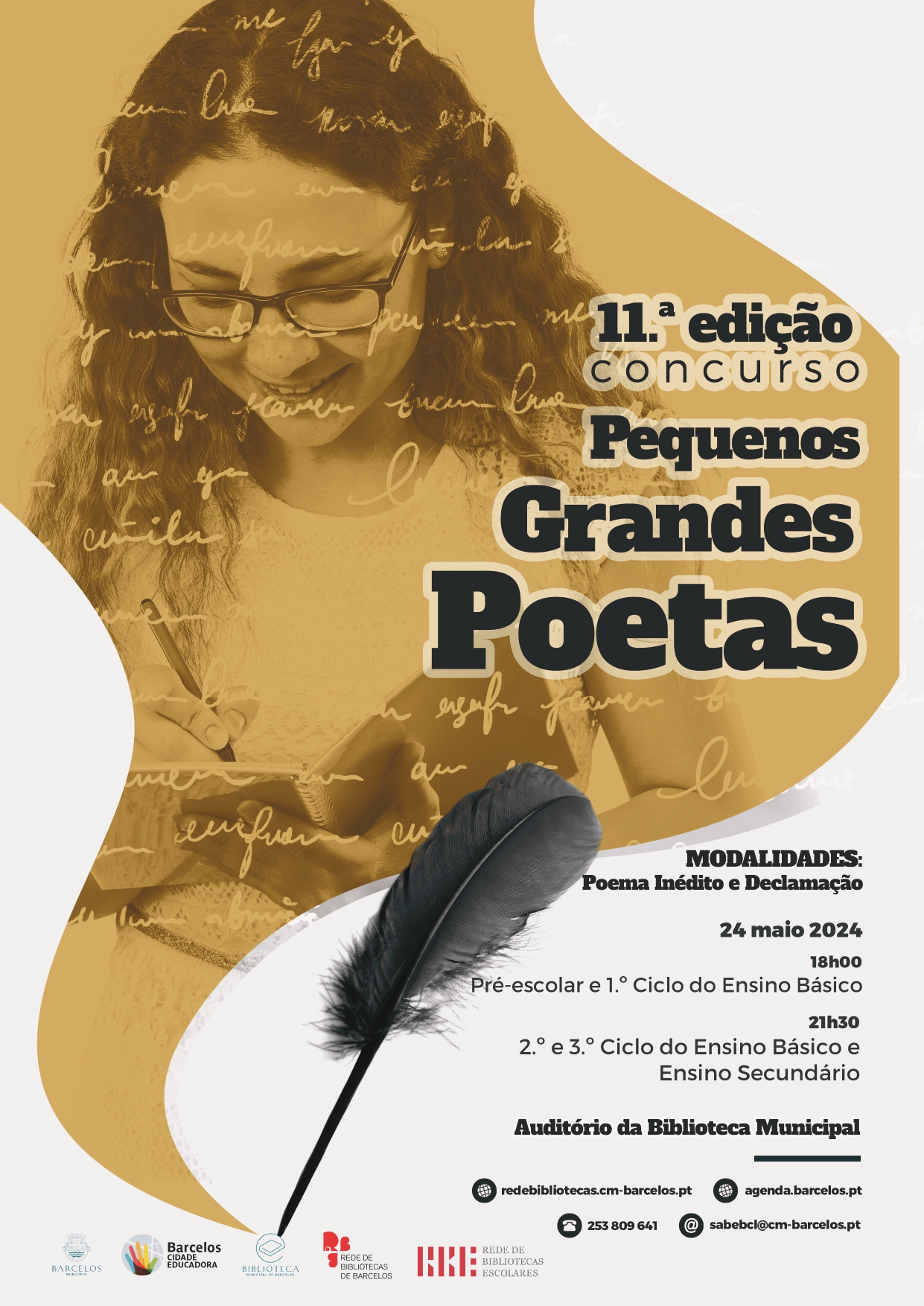 O Município de Barcelos, através da Biblioteca Municipal e da Rede Concelhia de Bibliotecas Escolares, promove, no próximo dia 24 de maio, no auditório da Biblioteca Municipal de Barcelos, a 11.ª edição do concurso "Pequenos Grandes Poetas".