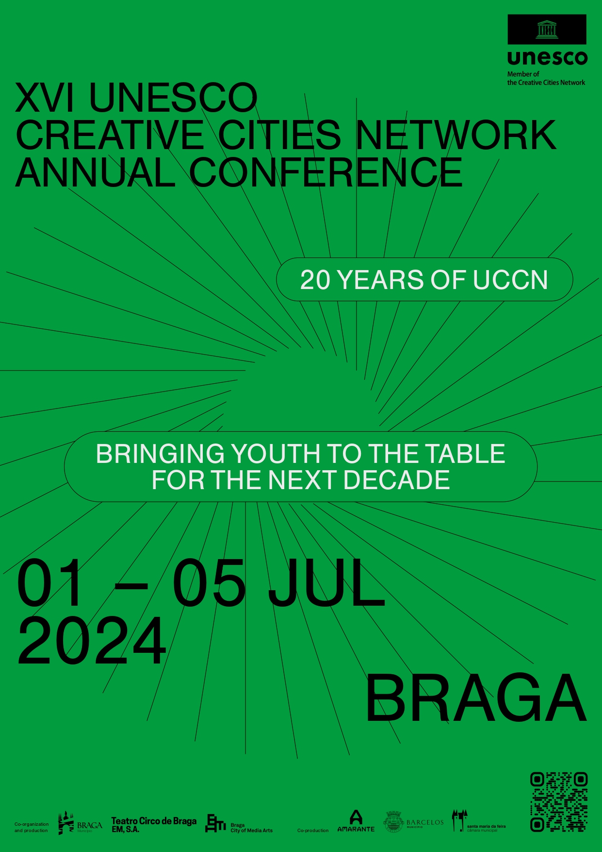 A XVI Conferência Anual da Rede de Cidades Criativas da UNESCO vai decorrer entre os dias 1 e 5 de julho deste ano. Tendo como sede a cidade de Braga, mas com ações descentralizadas em Barcelos, Amarante e Santa Maria da Feira, a reunião, que prevê atrair cerca de 600 delegados de todo o mundo, tem como principal objetivo a criação de um espaço transnacional de discussão, rumo à troca de experiências em torno das ideias, boas-práticas e políticas públicas na área da cultura. Tendo lugar no período em que se celebram os 20 anos da criação da rede, a Conferência pretende fazer um balanço do trabalho desenvolvido, fomentar novas ideias de colaboração entre cidades criativas de diferentes países, ao mesmo tempo que aponta soluções para um futuro habitado por cidades mais resilientes, inclusivas e sustentáveis. Para tal, a XVI Conferência de Cidades Criativas da UNESCO terá um foco especial no contributo que as novas gerações podem dar à construção de novas ideias e projetos. Um foco que se consubstancia no convite a jovens para a participação em momentos de discussão e trabalho de campo, abrindo assim caminho para o encontro de políticas de transição em áreas críticas como a inclusão social ou o ambiente.
