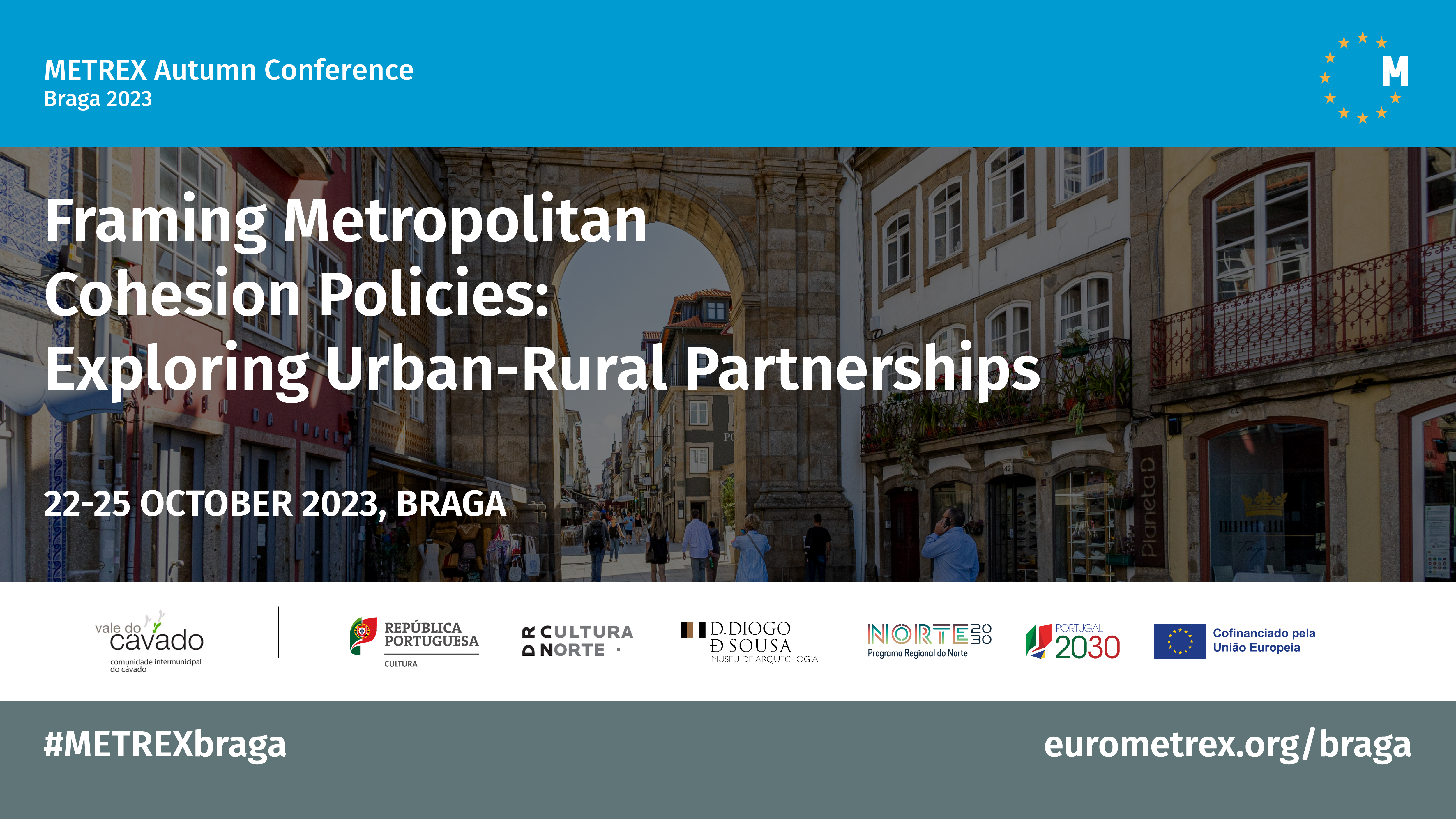 A conferência intitulada "Framing Metropolitan Cohesion Policies: exploring Urban-Rural Partnerships" decorrerá no Museu D. Diogo de Sousa, em Braga, entre os dias 22 e 25 de outubro. Durantes os dias da conferência estão previstas visitas a alguns espaços intervencionados no âmbito do Fundos de Coesão, em Braga e outros municípios do Cávado.