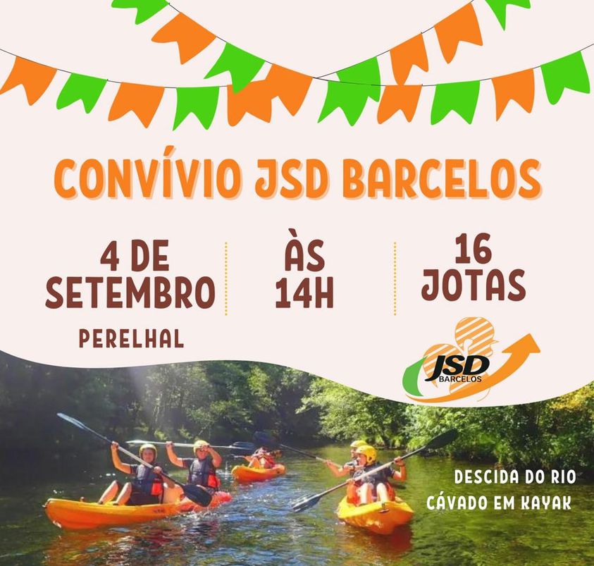 A JSD Barcelos está a organizar um convívio que inclui uma descida do rio Cávado em Kayak no próximo dia 4 de setembro, pelas 14h.
