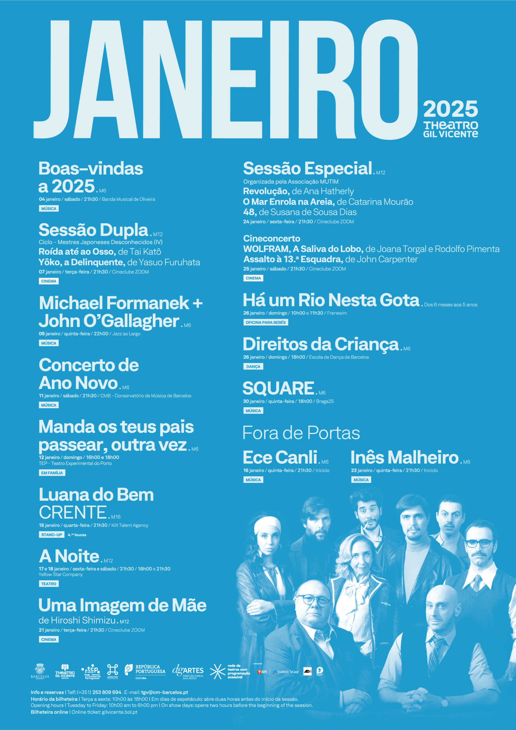 A agenda de espetáculos para o primeiro mês do ano inicia com as "Boas-vindas a 2025" pela Banda Musical de Oliveira, no dia 4, às 21h30. No dia 11, às 21h30, temos o tradicional "Concerto de Ano Novo", pelo CMB – Conservatório de Música de Barcelos, espetáculos que prometem proporcionar ao público um momento festivo com muita música e harmonia.