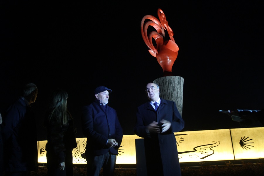 O Galo de 10 metros de altura instalado no local onde antes havia a fonte cibernética tem em sua volta um anel com a representação da Lenda do Galo.
