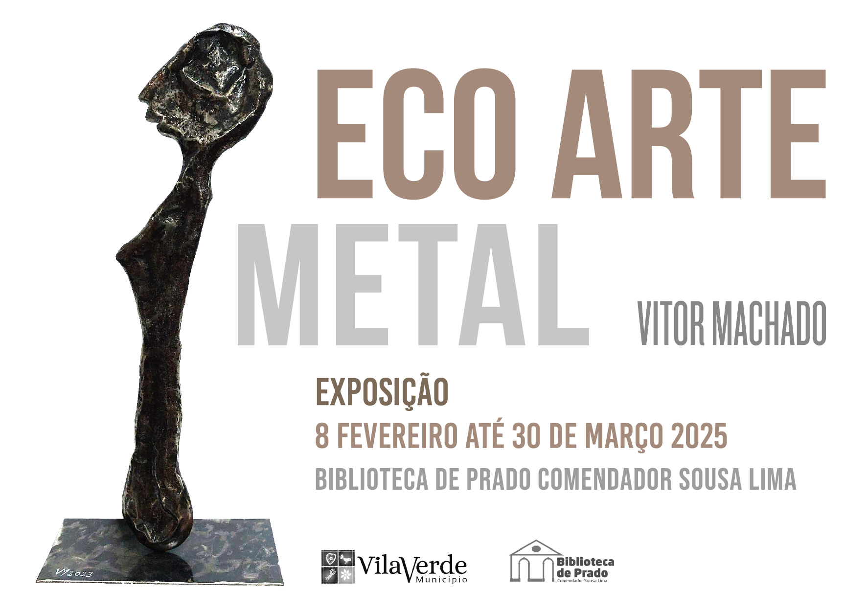 A Biblioteca Municipal Comendador Sousa Lima, na Vila de Prado, inaugura no próximo sábado, 8 de fevereiro, às 15h30, a exposição "Eco Arte de Metal", do escultor Vítor Machado.