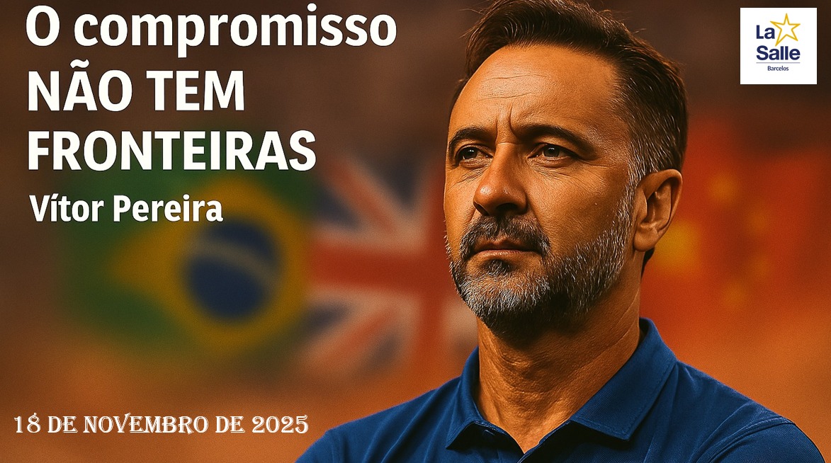 O Colégio La Salle acolheu recentemente o treinador de futebol Vítor Pereira para uma sessão de diálogo com os alunos do 9.º ano, integrada no Domínio de Autonomia Curricular (DAC). A iniciativa teve como objetivo proporcionar aos estudantes um contacto direto com personalidades do mundo profissional, permitindo-lhes explorar diferentes percursos de vida e refletir sobre valores e escolhas para o futuro.
