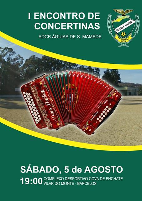 O Águias de S. Mamede organiza amanhã, sábado, a partir das 19h00, o I Encontro de Concertinas no Campo da Cova de Enchate, em Vilar do Monte. Filipe Rodrigues, presidente do clube, explica à Rádio Cávado em que consiste a iniciativa: "É uma questão de chamar público ao nosso campo e para a freguesia conviver um pouco. A entrada é livre. É trazer a concertina, chegar e tocar. Vem um grupo de Vila Nova de Gaia, vêm Os Manos de Fragoso e quem vier toca".