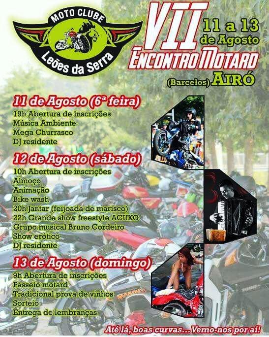 O Moto Clube Leões da Serra organiza no fim-de-semana a 7.ª edição do seu encontro motard do Airó. Pela primeira vez o evento é de três, começando já amanhã, sexta-feira, sublinha Nélson Cruz, presidente do Moto Clube Leões da Serra: "Pela primeira vez vamos fazer três dias. Na sexta-feira vamos ter churrasco e música ambiente, no sábado o dia é mais preenchido: temos bike-wash, almoço, DJ, shoe de free-style e um concerto [de Bruno Cordeiro] no sábado à noite. Mais importante do que o que vamos fazer de diferente, é manter o que sempre tivemos até agora: receber bem".