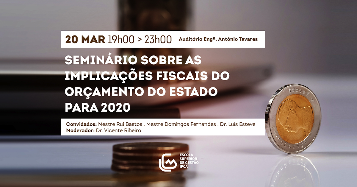 A Escola Superior de Gestão (ESG) do Instituto Politécnico do Cávado e do Ave (IPCA) realiza, no dia 20 de março, o Seminário sobre as Implicações Fiscais do Orçamento do Estado para 2020.