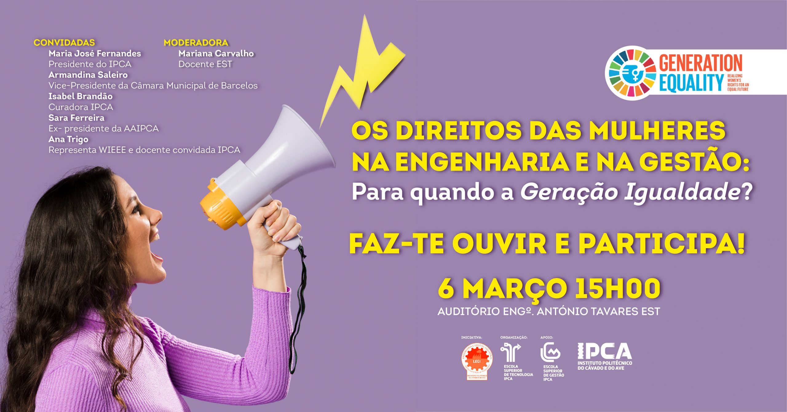 A Escola Superior de Tecnologia (EST) do Instituto Politécnico do Cávado e do Ave (IPCA) vai juntar-se ao tema “Eu sou a Geração Igualdade: concretizar os direitos das mulheres”, promovido pelas Nações Unidas, no âmbito do Dia Internacional das Mulheres.
