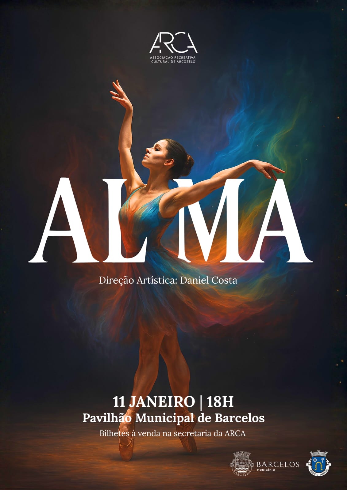 A ARCA – Associação Recreativa e Cultural de Arcozelo vem, por este meio, solicitar a vossa colaboração na divulgação do seu Espetáculo de Ano Novo «ALMA», que terá lugar no próximo dia 11 de janeiro, pelas 18h00, no Pavilhão Municipal de Barcelos.